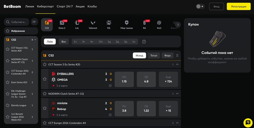 Приложение BetBoom для Android занимает всего 35 МБ и работает без лагов. В нём представлены ставки на киберспорт по всем популярным дисциплинам: Dota 2, CS2, LoL, Valorant, Overwatch и другие. Live-раздел обновляется в реальном времени. Можно делать ставка на тоталы, форы, точный счёт карт и даже на индивидуальные показатели игроков. Скачать приложение можно с официального сайта (в Google Play его нет из-за политики магазина) либо в Русторе.